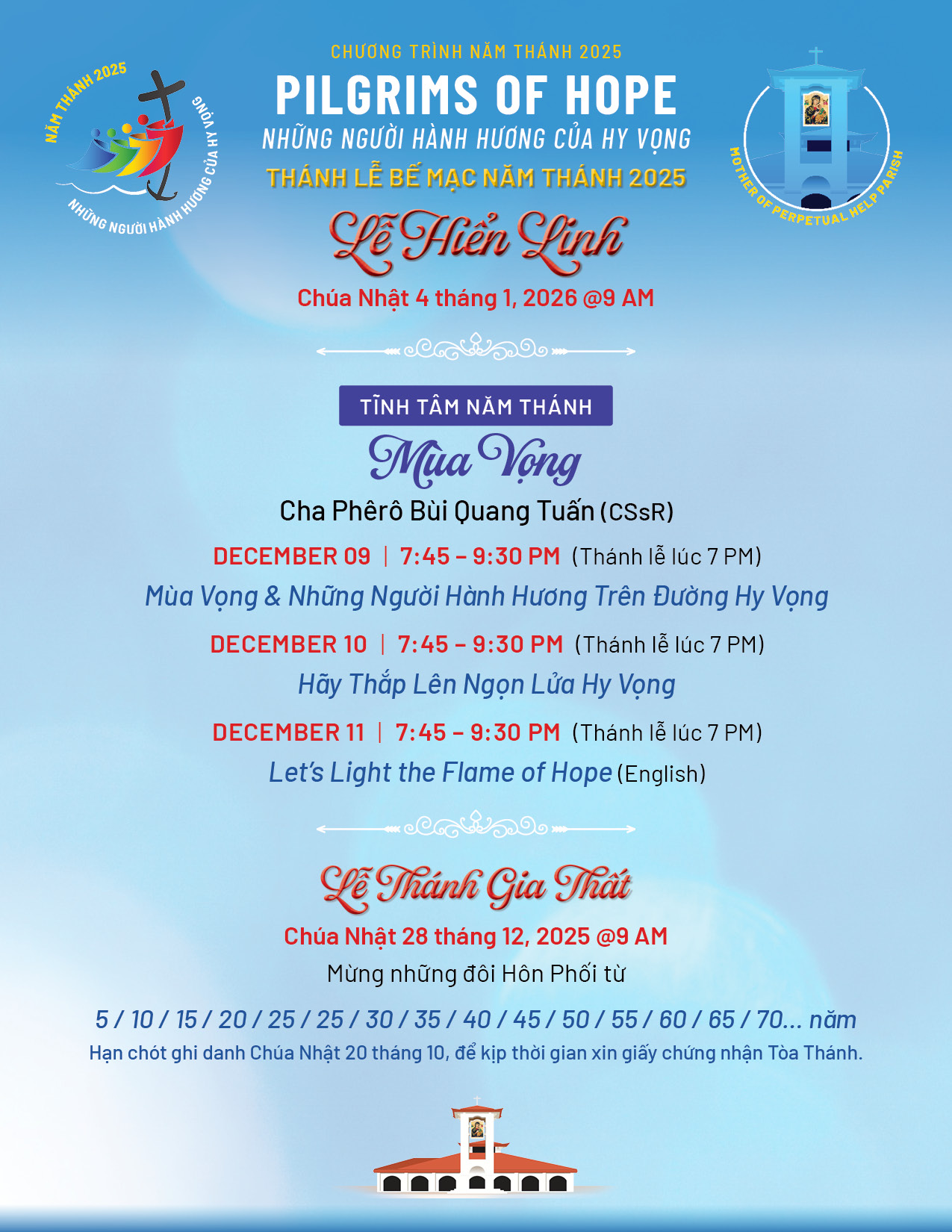 Chúng ta sẽ không có Thánh Lễ 7:00 sáng mà chỉ có kinh sáng và lần chuỗi Mân Côi với Thầy Phó Tế chủ sự.
