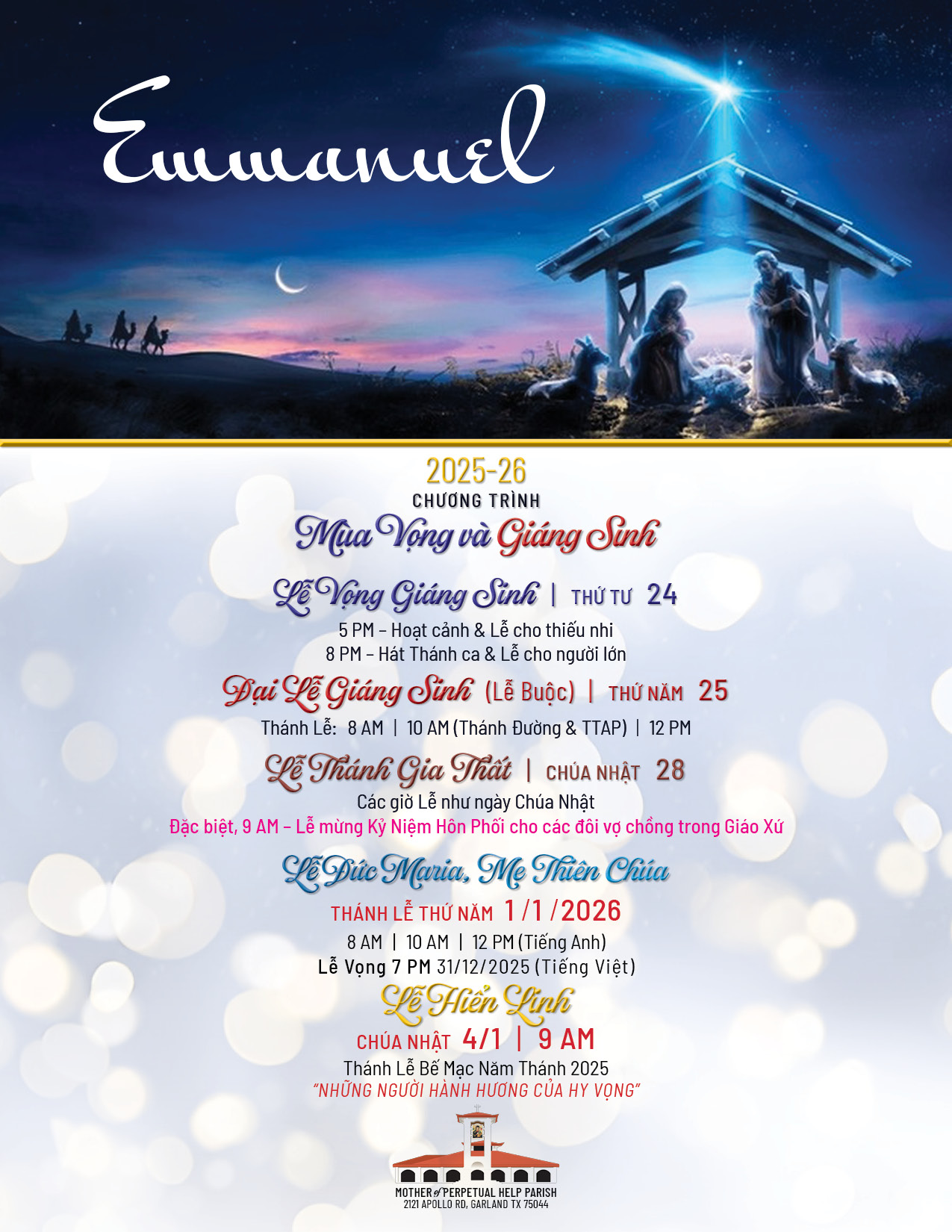 Lịch Sinh Hoạt Giáo Xứ